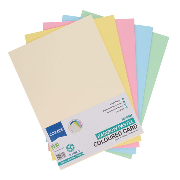 CONCEPT A4 160gsm CARD 50 SHEETS – RAINBOW PASTEL