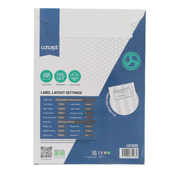 CONCEPT A4 MULTI-PURPOSE PRINTER LABELS 100 SHEETS – 24 LABELS