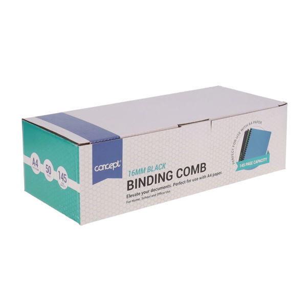 CONCEPT BOX 50 16mm A4 BLACK BINDING COMB CDU
