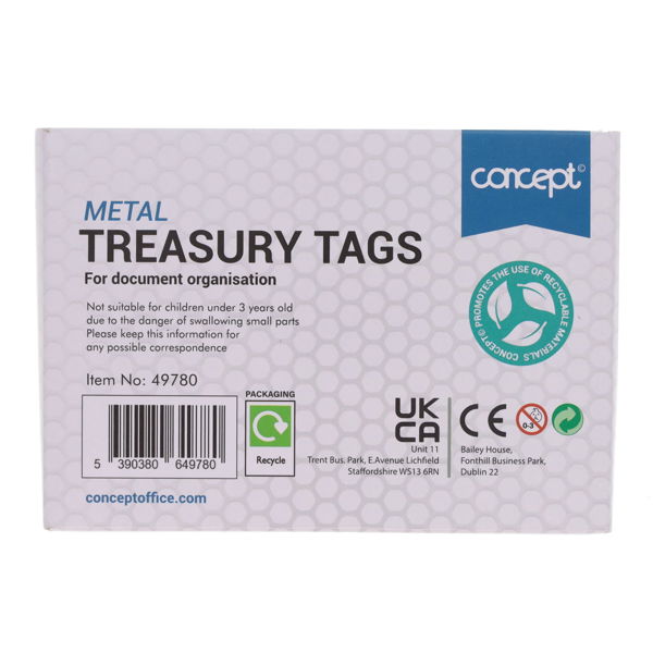 CONCEPT PKT.100 METAL TREASURY TAGS 51MM