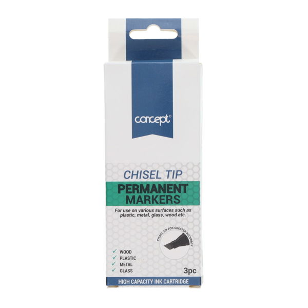 CONCEPT PKT.3 PERMANENT MARKERS CHISEL TIP – BLACK