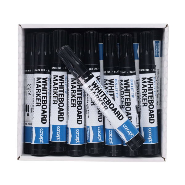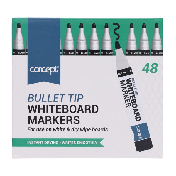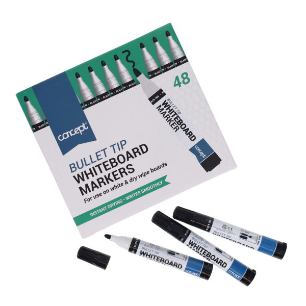 CONCEPT PKT.48 BULLET TIP WHITEBOARD MARKERS CDU – BLACK