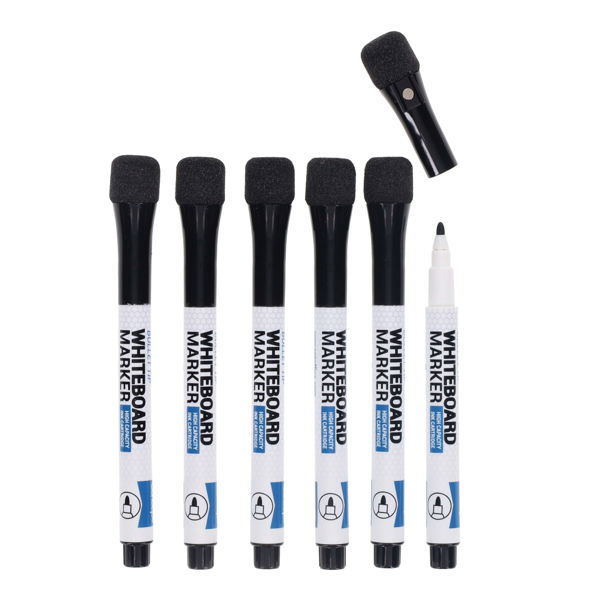 CONCEPT PKT.6 BULLET TIP WHITEBOARD MARKERS WITH ERASER LID – BLACK