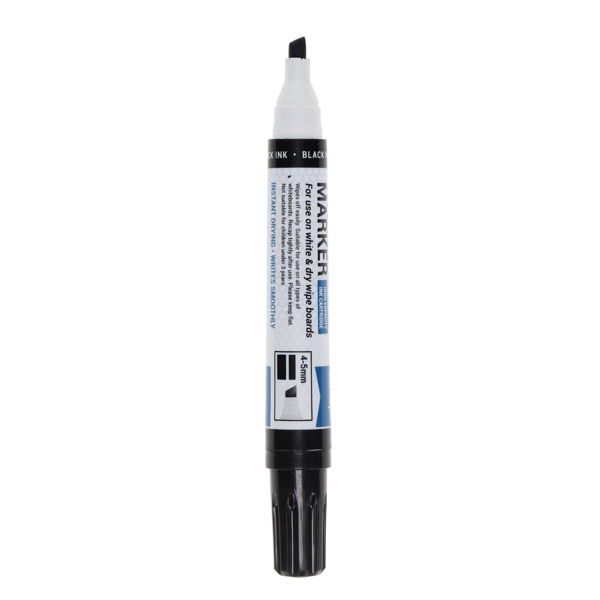 Chisel tip – 4-5mm For use on white & dry wipe boards Easy clean on non porous surfaces Non toxic No xylene No toluene