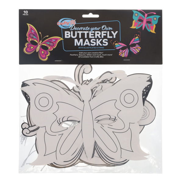 CRAFTY BITZ PK 10 READY TO COLOUR BUTTERFLY MASKS