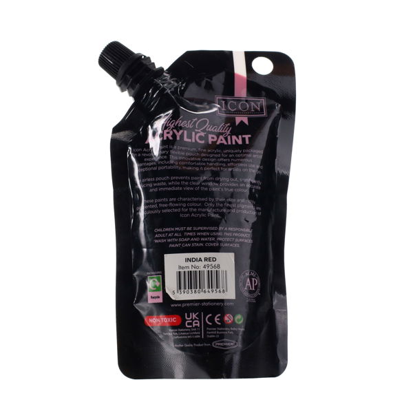 Premium fine acrylic uniquely packaged in a revolutionary flexible pouch Airless pouch prevents paint drying out Richly pigmented free flowing colour Non toxic