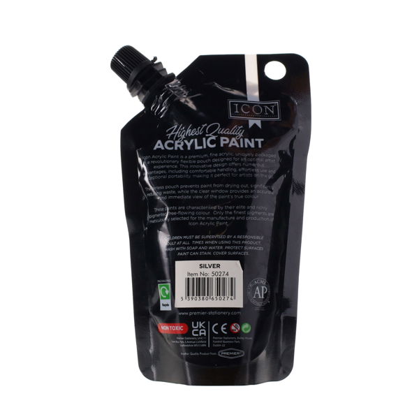 Premium fine acrylic uniquely packaged in a revolutionary flexible pouch Airless pouch prevents paint drying out Richly pigmented free flowing colour Non toxic