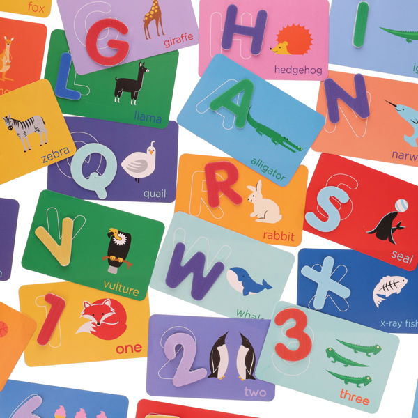 An interactive flash card game that encourages visual recognition improves math skills & aids with letter recognition . 10 digital pattern cards. 26 letter pattern cards. 36 foam letters & numbers