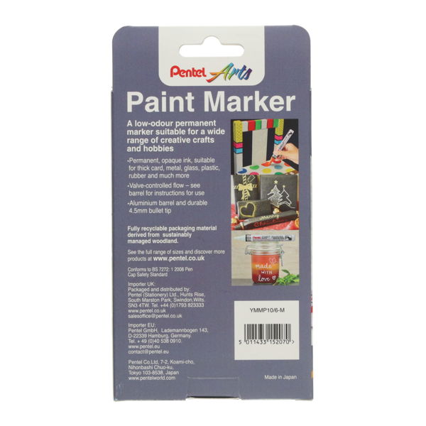 PENTEL PAINT MARKER MEDIUM BULLET TIP STANDARD COLOURS 6 PC WALLET