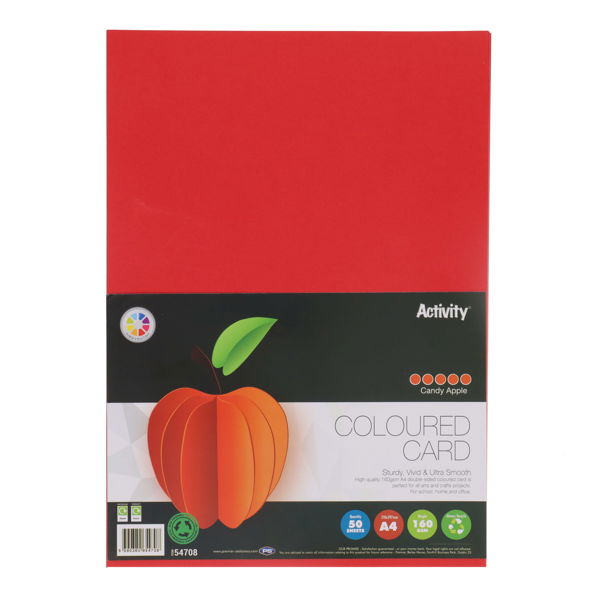 PREMIER ACTIVITY A4 160gsm CARD 50 SHEETS – CANDY APPLE