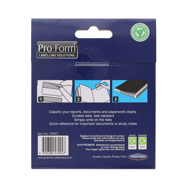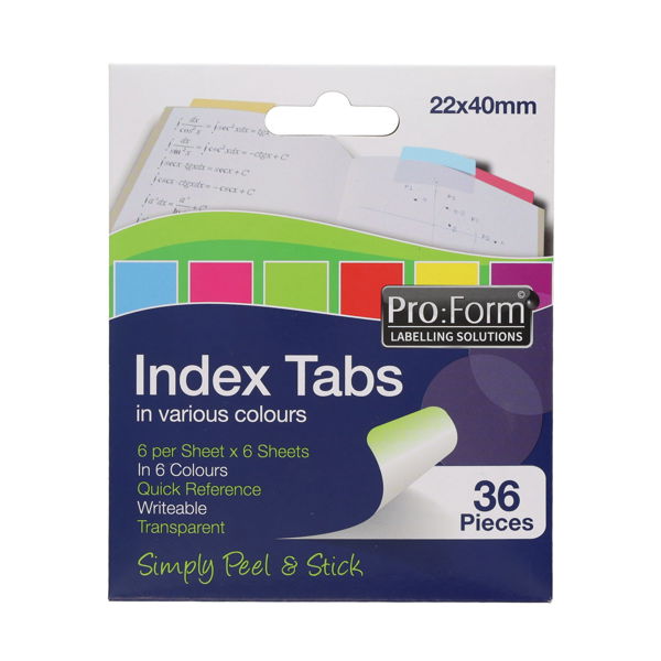 PRO:FORM PKT.36 6 COLOUR INDEX TABS – 22x40mm