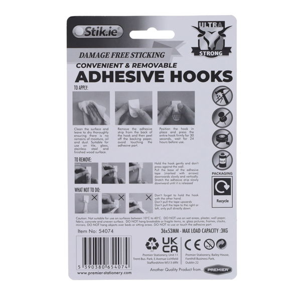 STIK.IE PKT.2 ADHESIVE HOOKS 36X52MM ULTRA STRONG