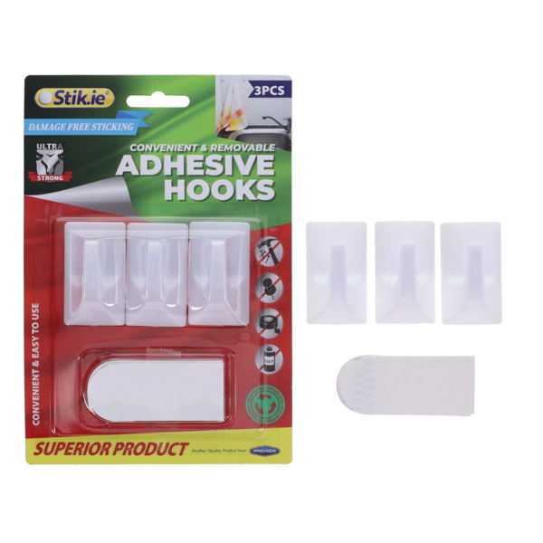 STIK.IE PKT.3 ADHESIVE HOOKS ULTRA STRONG