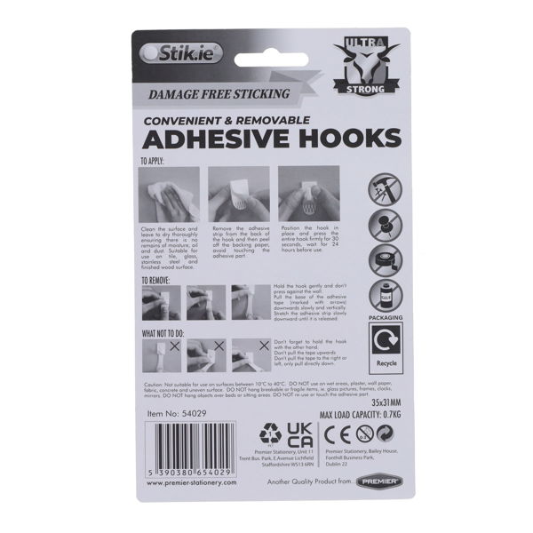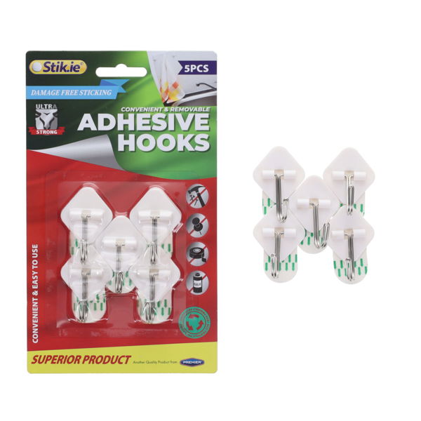 STIK.IE PKT.5 ADHESIVE HOOKS 35x31MM ULTRA STRONG